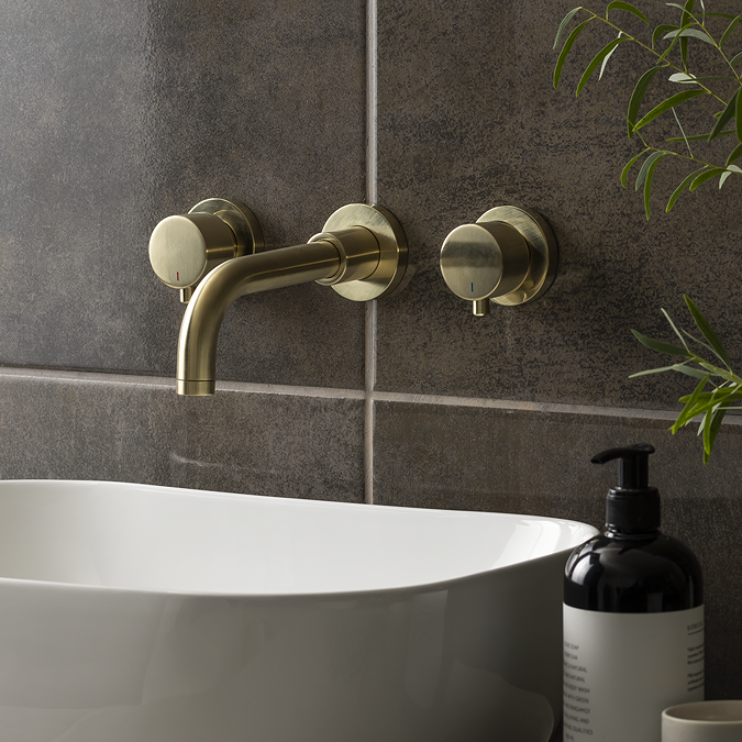 Arezzo Round Wall Mounted Basin Mixer Tap in Modern Brushed Brass (3 Tap Holes)